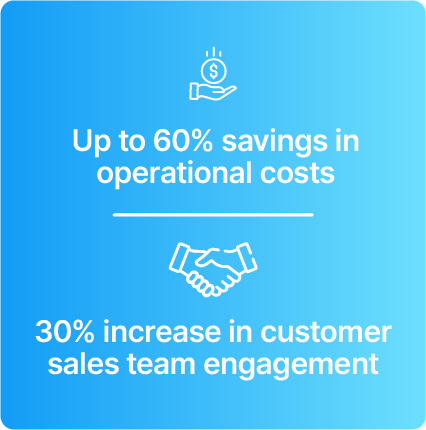 With end-to-end automation and data validation, CIAI offers its customers 100% accuracy in incentive pay calculations. Customers can save up to 60% in operational costs using CIAI’s app, and sales team engagement has increased by 30% among users.